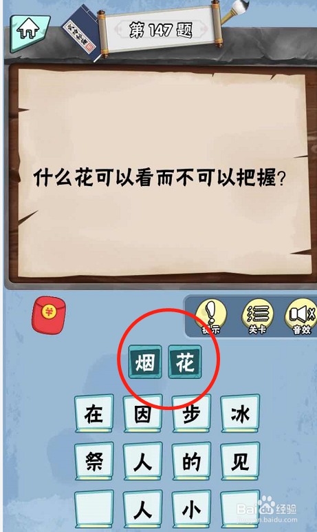 在脑子急转弯达人Lv2人中精英第147关内,提问我们什么花是可以看可是不成以把握的。