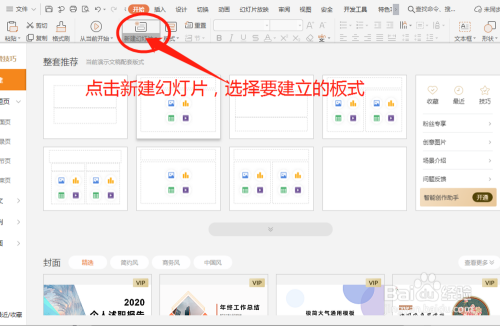 2-打开起头后选择新建幻灯片,找到合适的模板;