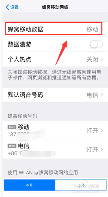 点击蜂窝移动数据进入。