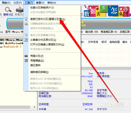 我们东西页面,点击重建分区表,进行分区表的修复。