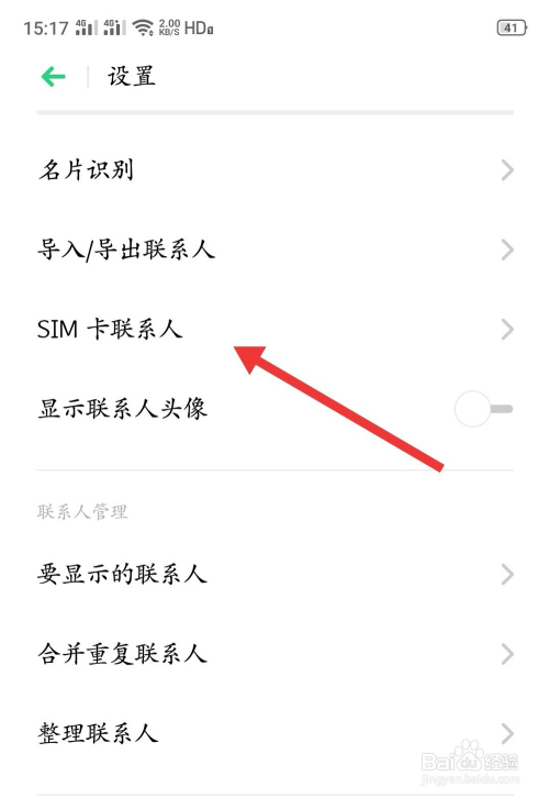 第三步:进入【设置】之后选择【SIM卡联系人】