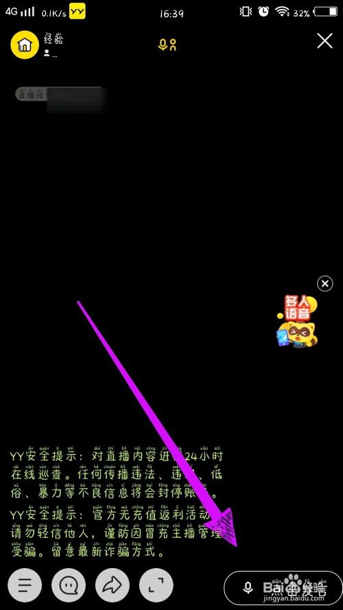 第二步,进入yyAPP本家儿页后,点击右下角的多人语音按钮。