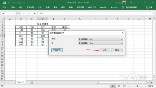 点击Excel的Inquire弹出Inquire东西栏,然后点击“比力文件”图标。若是此时仅打开1个Excel文件会报错,需提前打开2个需比力的Excel文件。