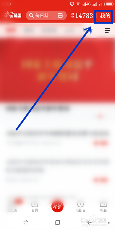进入学习强国本家儿页后,单击右上角【我的】