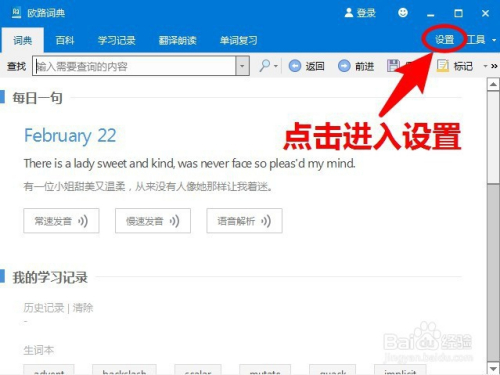 软件安装完毕后,点击打开软件,进入欧路辞书本家儿页。