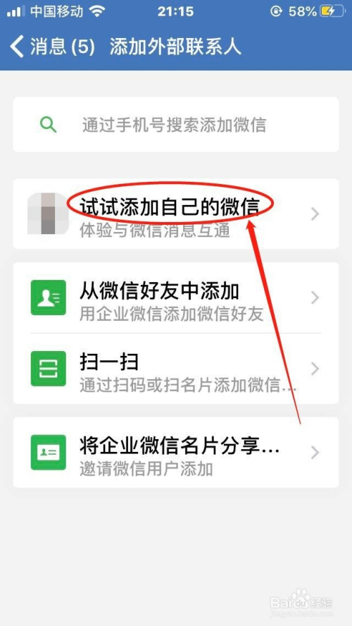 在“添加外部联系人”页面,点击“尝尝添加本身的微信”——“添加为联系人”——“发送添加邀请”,如下图所示。