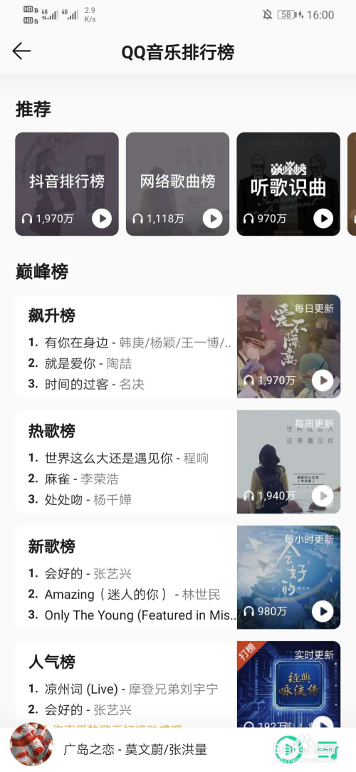 最后就可以查看QQ音乐排行榜了,如图所示。