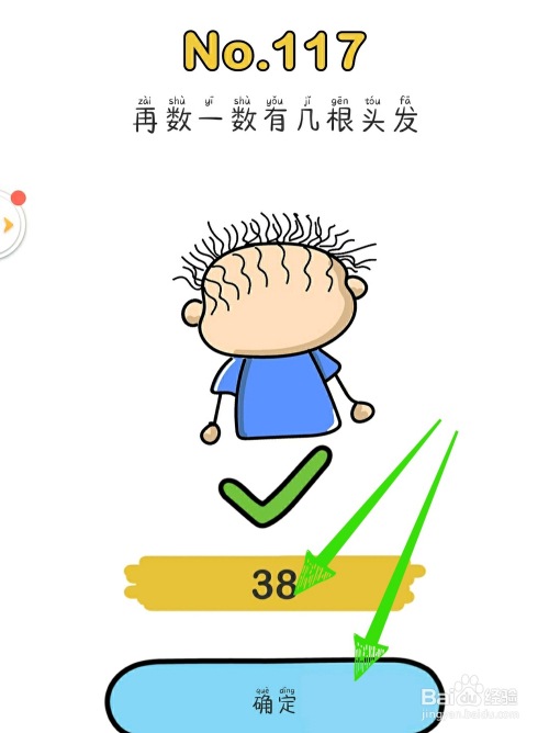 第四步,数清小人头上有几多根头发,输入谜底。