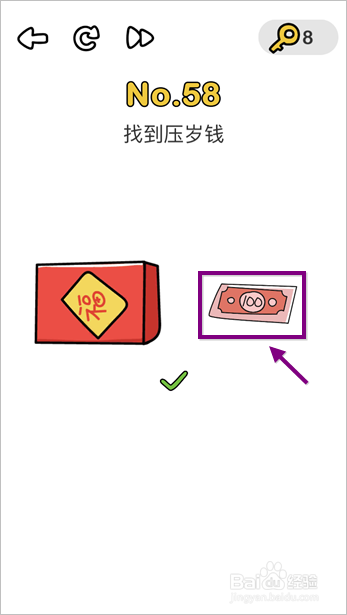 以上为脑洞巨匠找到压岁钱攻略,第58关经由过程后点击“下一关”即可。