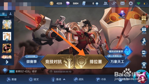 在王者荣耀游戏本家儿页面中,我们点击排位赛。