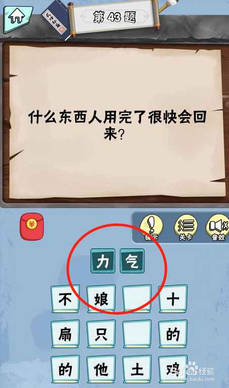 在脑子急转弯达人Lv3天才博士第43关内,有一个工具,用完了之后很快就会回来,提问我们这是什么。