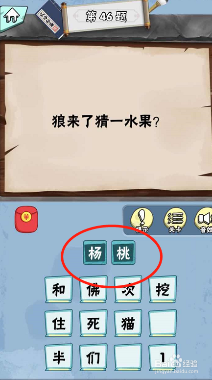 在脑子急转弯达人Lv3天才博士第46关内,狼来了,猜一个生果。
