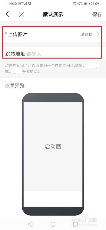 第五步可以上传启动页的图片,也可以输入点击图片跳转的地址,如下图所示: