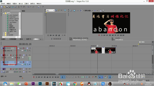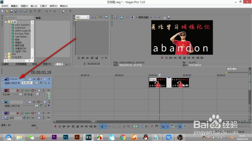 1.打开vegas软件,在时候线的左侧是轨道头,这里有视频轨和音频轨两种轨道。