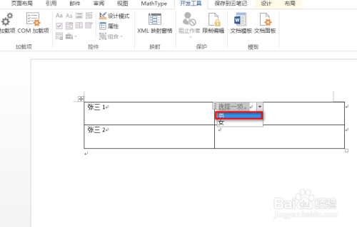 在word表格中,对生当作好的下拉菜单进行选择设置,具体如下图所示: