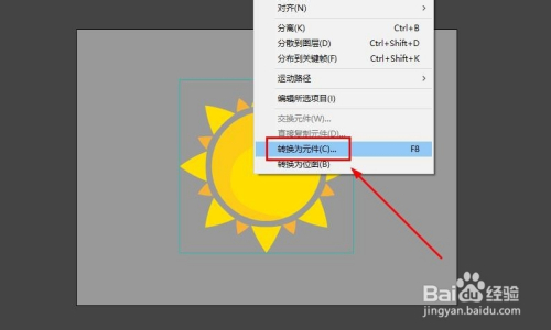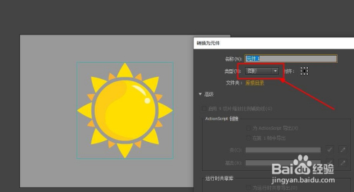 分歧形态的太阳,需要分歧的处置体例,这里就简单讲一下现有外形的太阳建造方式。将素材转换为元件,选择图形元件。