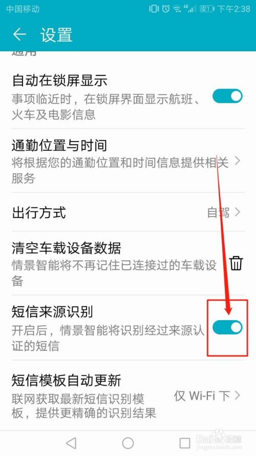 开关按钮变为绿色,“短信来历识别”功能当作功开启。