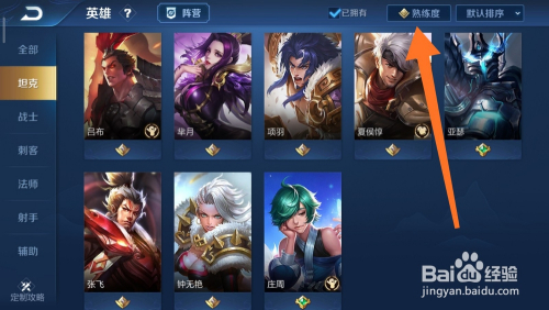 接着,我们下拉列表,寻找本身要查看荣耀战力的英雄。