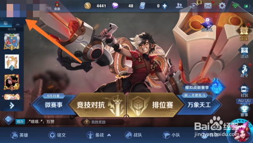我们在王者荣耀游戏页面中,点击打开左上角的头像页面。