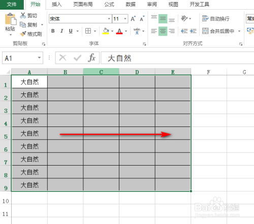 如下图为原始数据表格,此中需要往有边框的多个单位格中输入不异的内容(本示例为“大天然”)。