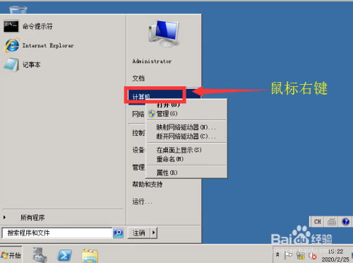 在要添加的项目上面点击鼠标右键。好比我们这里在计较机 字样上点击鼠标右键。