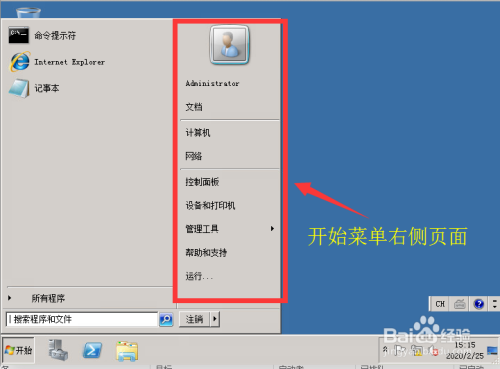 点击开始菜单后,我们看弹出的开始菜单右侧页面。