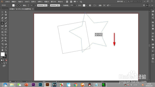 按住鼠标左键进行拖拽,默认是画一个五角星,这个时辰鼠标不要松开。