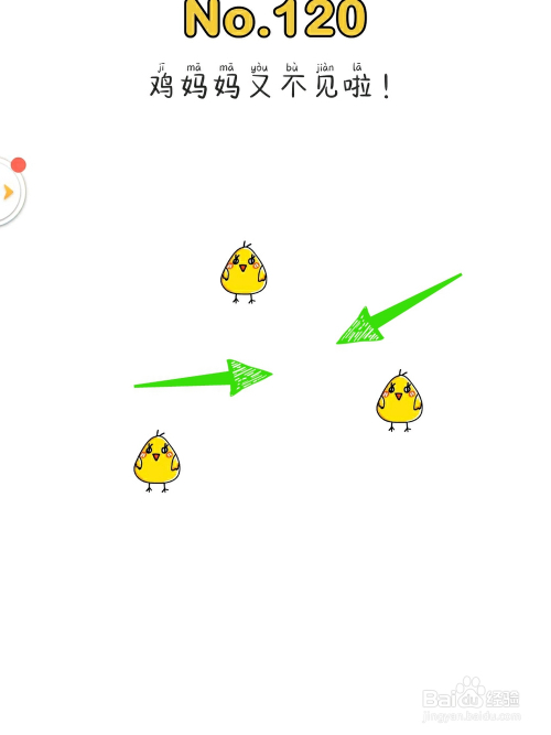 第三步,进入120关后,看见三只小鸡,标题问题:是鸡妈妈又不见了。