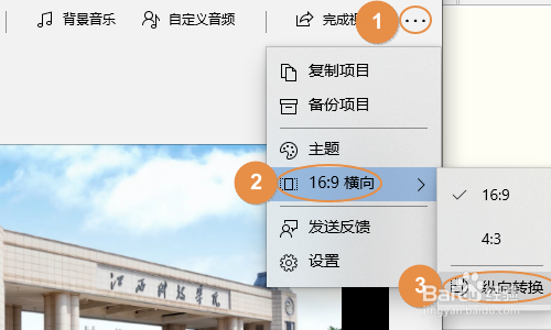 这样就会在软件的右侧看到视频预览界面,如图一所示...最后点击软件右上角的三点图标,而且依次点击“横标的目的”-“纵标的目的转换”就能将本来的横屏视频保留为竖屏了;