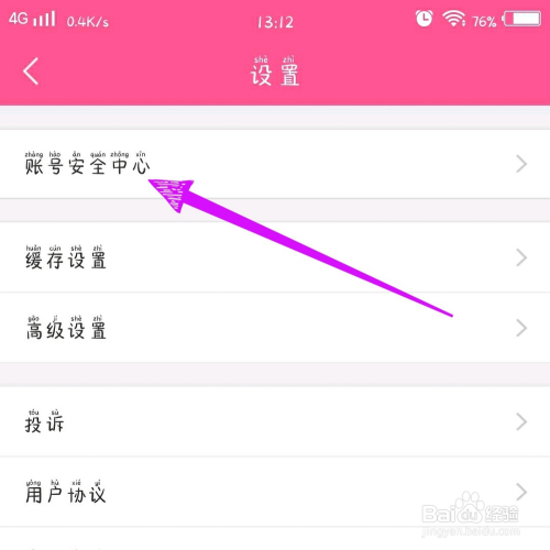 第四步,在设置中点击“账号平安中间”。