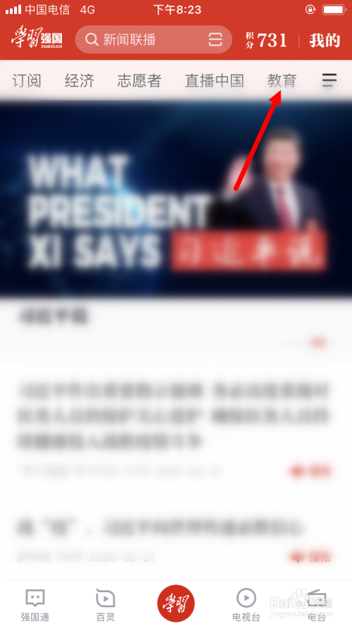 然后在页面上端的导航栏里面找到并点击【教育】。