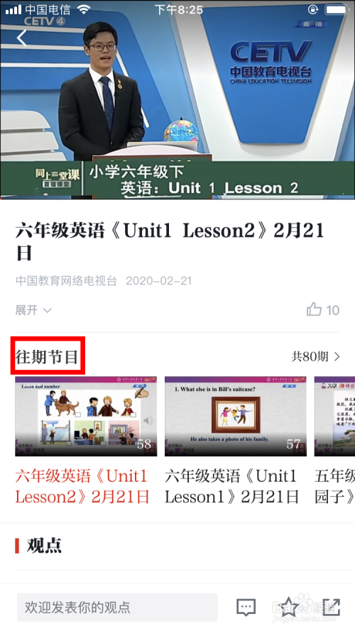 7、下面这个页面里便可以看到回放内容了,并且在【往期节目】里选择这个科面前目今的所有回放课程。