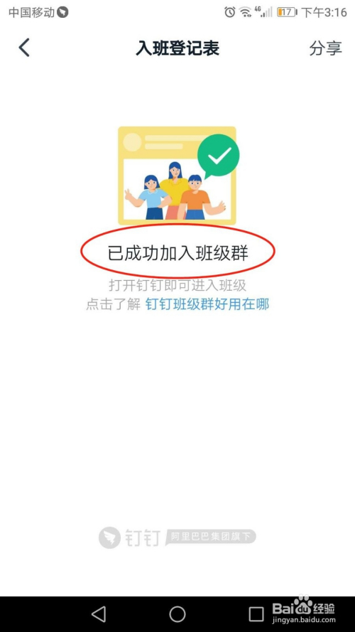 已当作功插手钉钉班级群。打开钉钉,即可进入班级。