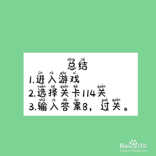 第三步,进入114关后,当真不雅察图案,找出分歧,输入谜底8,即可过关。