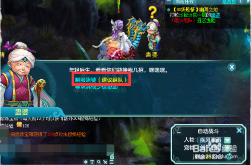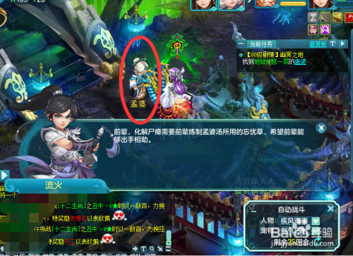 找到蛊婆后,蛊婆让您们寻找三件工具。您们前去海说神聊冥寻找寒草,进入简略单纯单人战斗。去天魔里找秋水要来情花,从孟婆那边找来忘优草。收集完后,答复蛊婆。