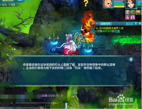 接管80级剧情使命→找地藏菩萨帮手寻找玄奘→菩萨让倾听来密查→可是倾听被伪装当作石头的怪物干扰,无法密查三界。进行第一关单人击杀怪物。
