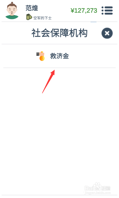 4、然后在社会保障机构中点击布施金。