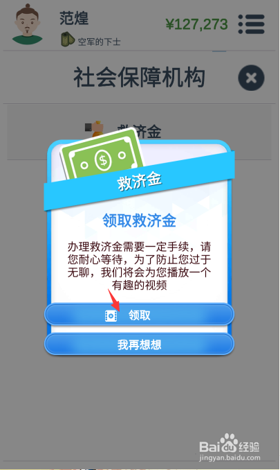 6、最后若是没有工作可领取到金钱,若是有工作则领取掉败。