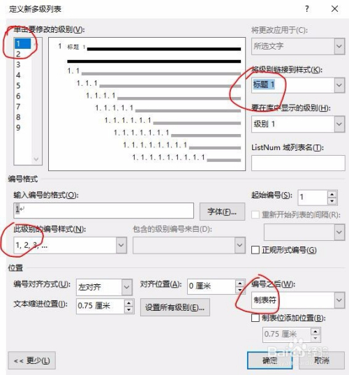 第四:界说【题目级别】【编号样式】等。