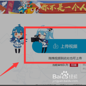 然后我们会进入创作页面,然后我们可以点击页面中心的上传视频,筹办上传本身想要上传的视频。