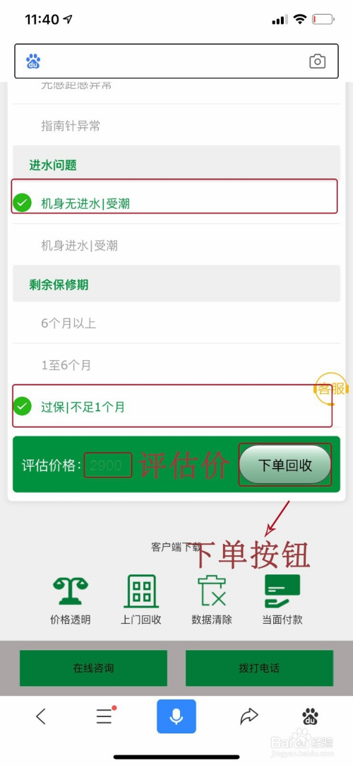 在评估页面勾选本身手机的设置装备摆设、外不雅利用以及功能环境,可以查看到本身的苹果手机估价,然后点击下单收受接管