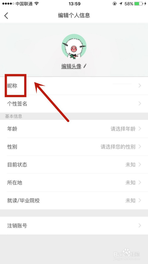 2.点击页面编纂小标,再点击进入昵称选项。