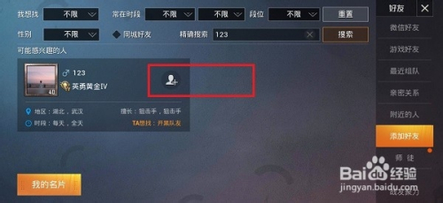 第三步在添加老友界面,输入和平精英id,点击搜刮