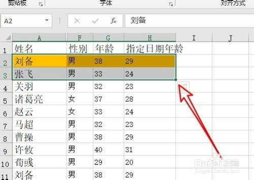 然后我们选中前两行,接着点击右下角的快速填充按钮。