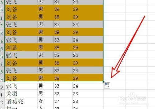 5、标的目的下拖动快速填充按钮填充下面的表格。
