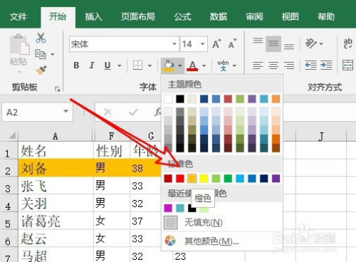 3、在弹出的下拉菜单中选择响应的填充颜色。