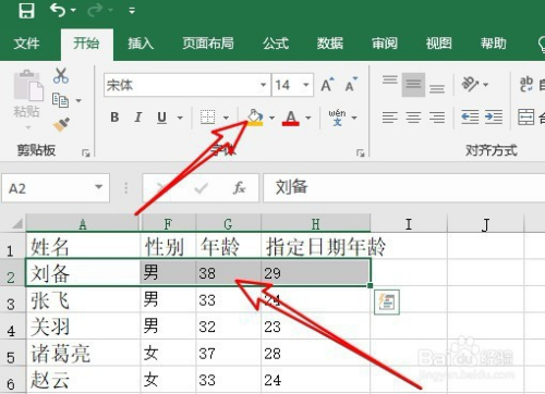 4、然后我们选中前两行,接着点击右下角的快速填充按钮。