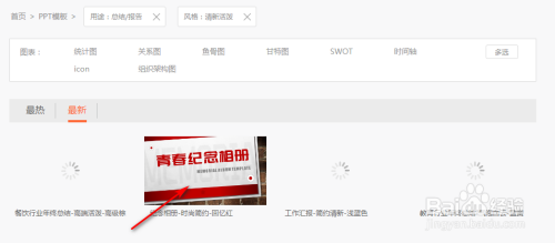 点击网页上的ppt图表右侧的小尖头,会呈现一个下拉菜单,在菜单中点击选择一种模板类型,具体如下图所示: