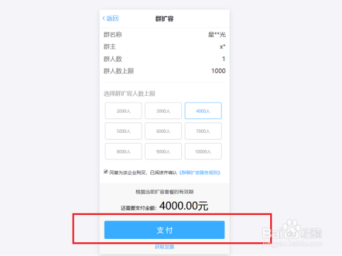 第五步进去之后,选择增添的群人数,点击支付,支付完当作之后,就当作功增添群人数了