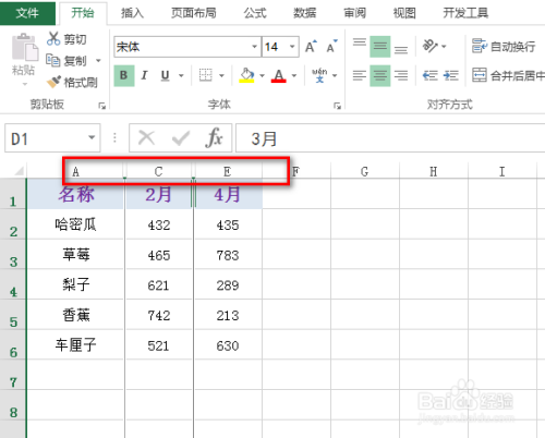 利用快捷键Ctrl+0,就能看到选中的列被埋没起来了,结果如下图所示: